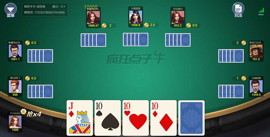 每一局的游戏时间相对较短。从发牌开始,到玩家组合牌型并比较大小,整个过程通常只需要短短几分钟。这种快节奏的特点使得玩家可以在碎片化的时间内享受游戏的乐趣,无论是在等公交、午休时间还是在工作间隙,都可以随时开启一局疯狂点子牛牛游戏。