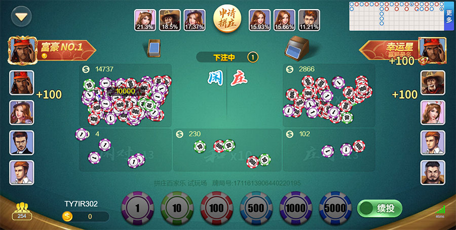 拼庄百家乐的游戏节奏紧凑,每一轮的发牌、决策都充满了不确定性。玩家需要时刻保持警惕,关注牌局的变化,这使得游戏过程充满了紧张和刺激的感觉。