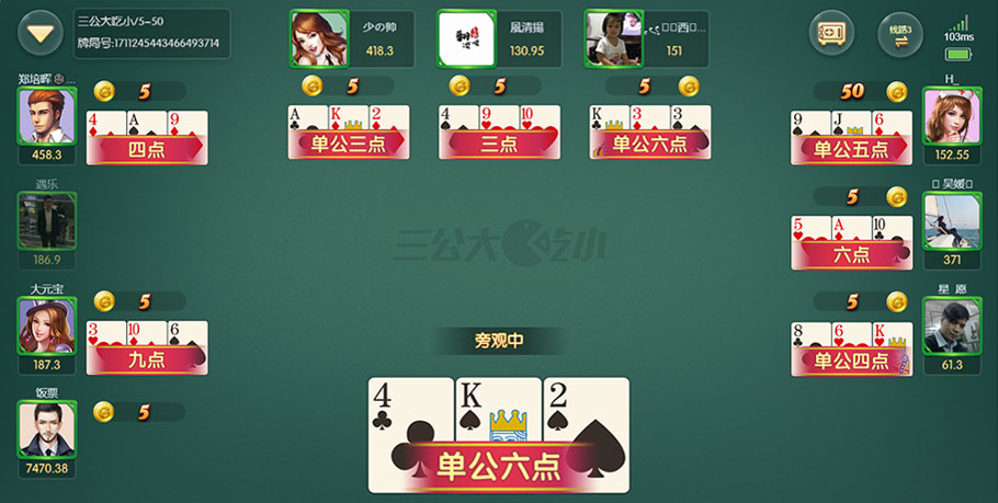 三公大吃小的规则相对简单,玩家只需了解基本的牌型和比牌规则,就能快速上手。无论你是棋牌新手还是资深玩家,都能在这款游戏中找到乐趣。
