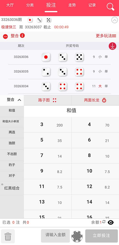 黑码:开出三个不同号即为黑码(例如123、245等)。