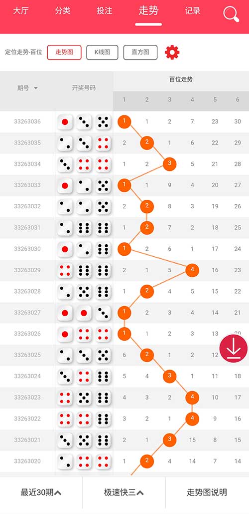 每期快三开奖球数共3粒(每个球数分别为1~6)。